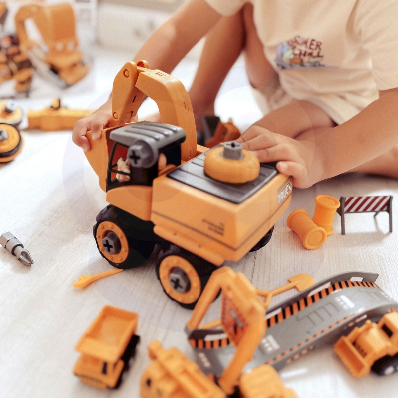Mega Plac Budowy 5w1 od marki WOOPIE to kompletny zestaw dla każdego miłośnika ekstremalnych pojazdów! Zabawa polega na skręceniu przy pomocy wiertarki lub śrubokręta jednego z 5 rodzajów pojazdów i na zabawie w budowę przy użyciu wielu akcesoriów m.in. figurki budowlańca, 4 mini pojazdów lub gruzu. Zestaw jest dopracowany do najmniejszego szczegółu oraz dodatkowo większość elementów konstrukcji pojazdów jest ruchoma np. daszek koparki. W trybie „Placu Budowy z Torem”, dziecko może wystrzelić jeden z 4 mini pojazdów z wyrzutni na początku toru. Zabawka poza kreatywnością i wyobraźnią rozwija, również zdolności manualne dziecka tzw. „małą motorykę„, dzięki zabawie w skręcanie. Zestawem można bawić się wszędzie a nawet w piaskownicy!