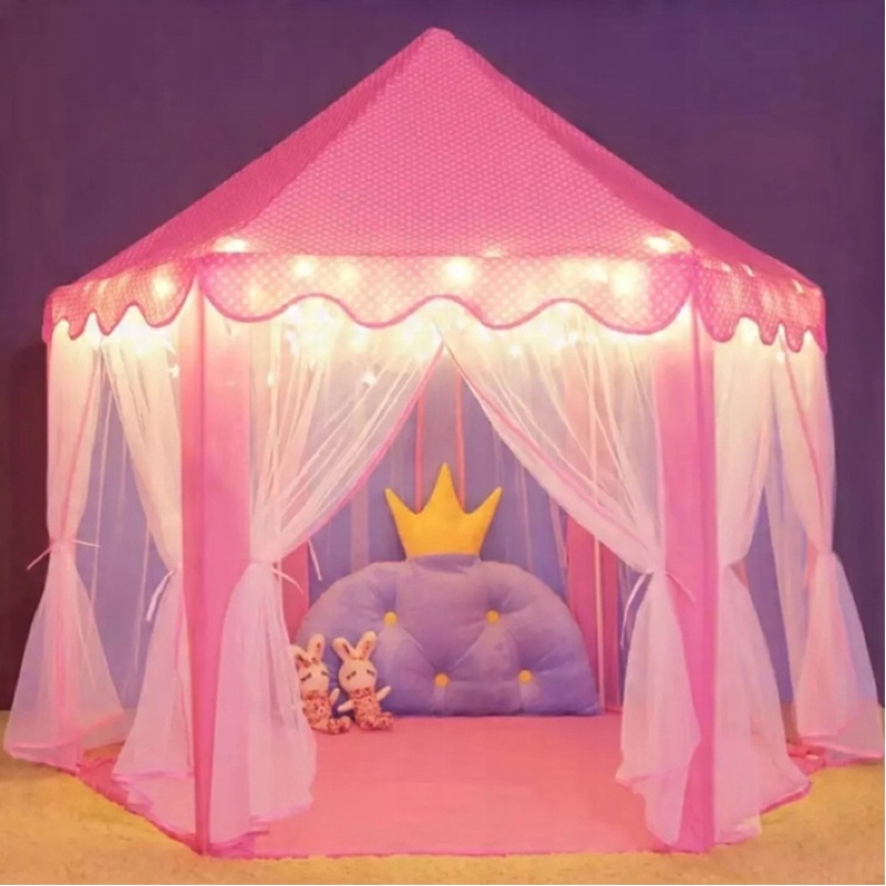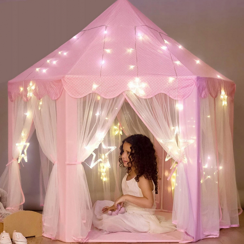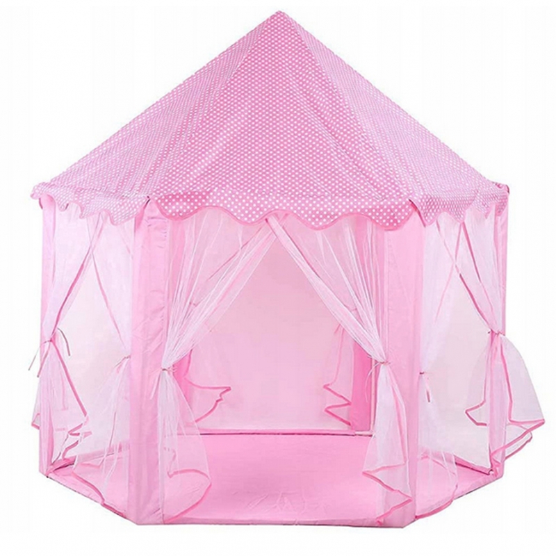 Ten uroczy różowy namiot pałacowy to idealne miejsce, gdzie Twoje dziecko będzie mogło przenieść się do świata bajkowych przygód, snuć fantastyczne opowieści i bawić się w królewskim stylu! Stworzony z dbałością o detale, stanie się sercem każdego pokoju dziecięcego.