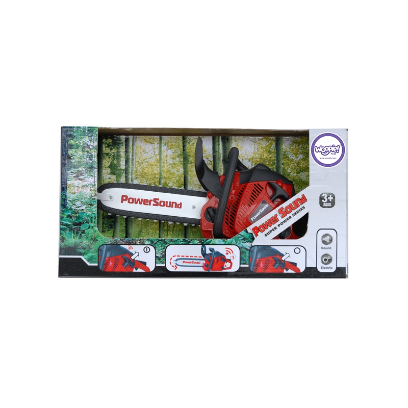 Zabawkowa Piła Spalinowa marki WOOPIE jest w 100% bezpieczna dla dziecka. Obracający się łańcuch zabawkowej piły spalinowej dla dzieci wykonany jest z gumy – nie ma ryzyka, że dziecko skaleczy się jakimś elementem. Piła łańcuchowa dla dzieci uruchamiana jest jak prawdziwa! Aby włączyć zabawkową piłę motorową należy pociągnąć w górę uchwyt rozruchu, następnie nacisnąć górny przycisk na rączce, a potem dolny przycisk. Po wykonaniu tych czynności łańcuch w zabawkowej pile spalinowej zacznie się obracać, a zabawka zacznie wydawać realistyczne dźwięki silnika. Zabawkowa piła motorowa rozwija wyobraźnię dziecka i pozwala mu poczuć się jak dorosły, który wykonuje ważną pracę.