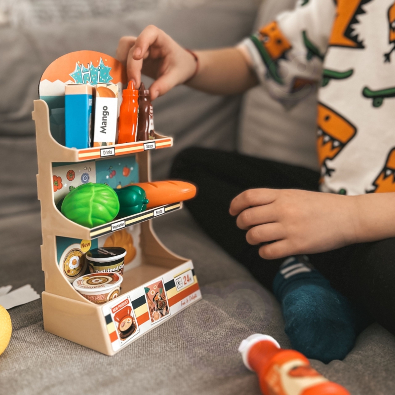 Sklep Supermarket od marki WOOPIE to świetna zabawa dla małych sprzedawców! Dzieci mogą obsługiwać klientów, ważyć produkty i korzystać ze skanera. Zabawa w sklep pomaga rozwijać kreatywność, wyobraźnię oraz zdolności manualne i samodzielne myślenie. Idealny pomysł na wspólne zakupy i mnóstwo frajdy!