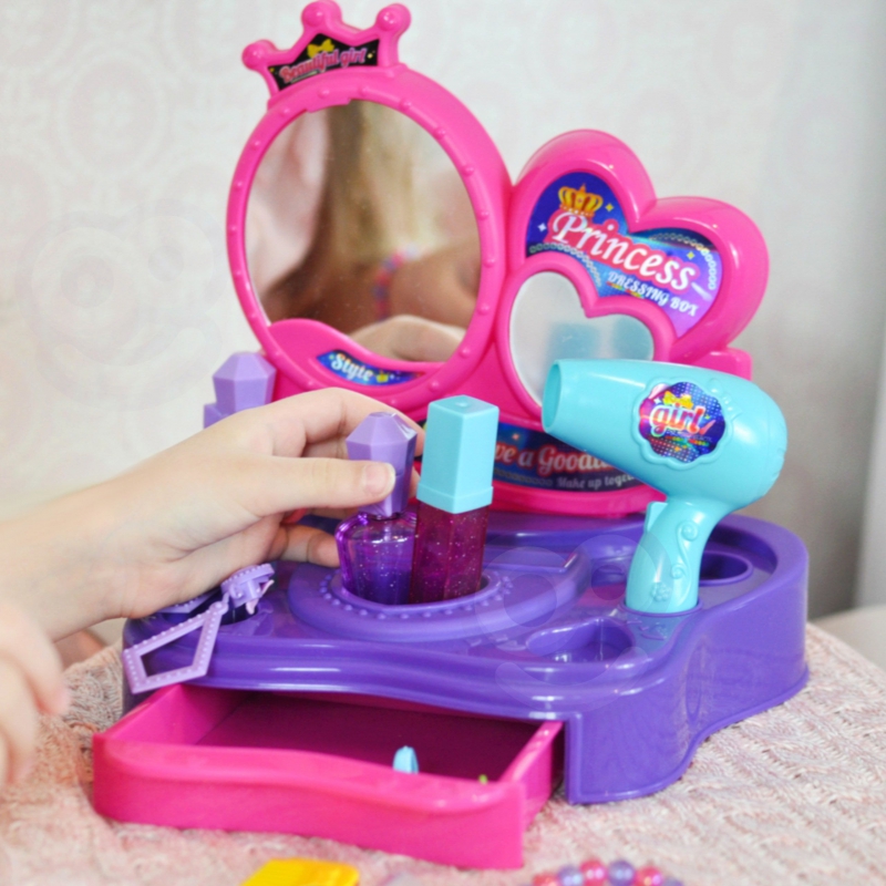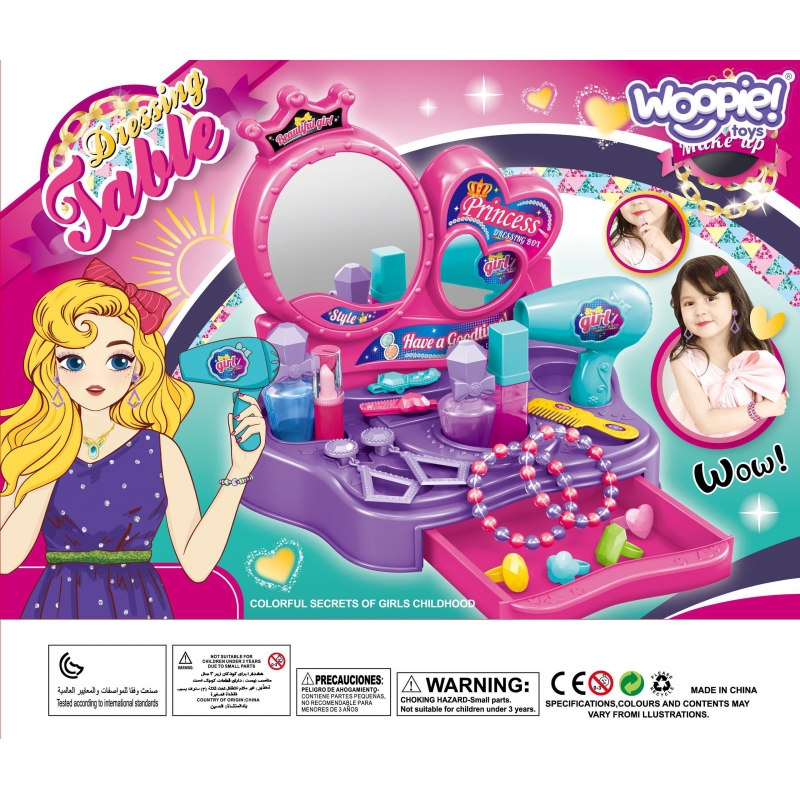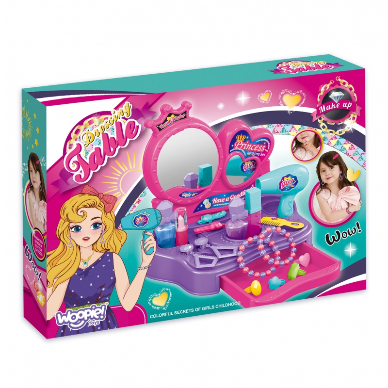 Toaletka Salon Urody od marki WOOPIE wprowadzi dzieci w świat mody i pozwoli wykreować swój własny styl! Zestaw wygląda jak w prawdziwym salonie urody. Zestaw zawiera: toaletkę, suszarkę, 4 pierścionki, 2 spinki, 2 branzoletki, grzebień, kolczyki, 2 perfumy, lakier i szminkę. Zestaw rozwija pierwsze zainteresowania, zdolności manualne, a przede wszystkim wyobraźnie i kreatywność w tworzeniu unikalnego stylu!
