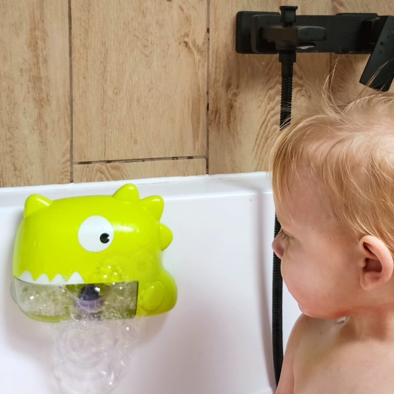 Maszyna do robienia baniek w kształcie dinozaura marki WOOPIE to świetna zabawka do kąpieli mająca pojemność 250 ml a wbudowany mocny silnik może automatycznie wygenerować ponad 5000 bąbelków dzięki czemu szybko napełnisz całą wannę. Maszyna do baniek mydlanych wykonana jest z wysokiej jakości ABS, z wodoodpornością IP6 a funkcja muzyki idealnie sprawdzi się na zewnątrz. Ulepszone przyssawki łatwo adsorbowane na gładkich powierzchniach, super przylepne dzięki czemu łatwo nie spadają. Dynamiczna muzyka i bąbelki inspirują dzieci do zabawy podczas kąpieli a maszynę można wyłączyć w dowolnym momencie.