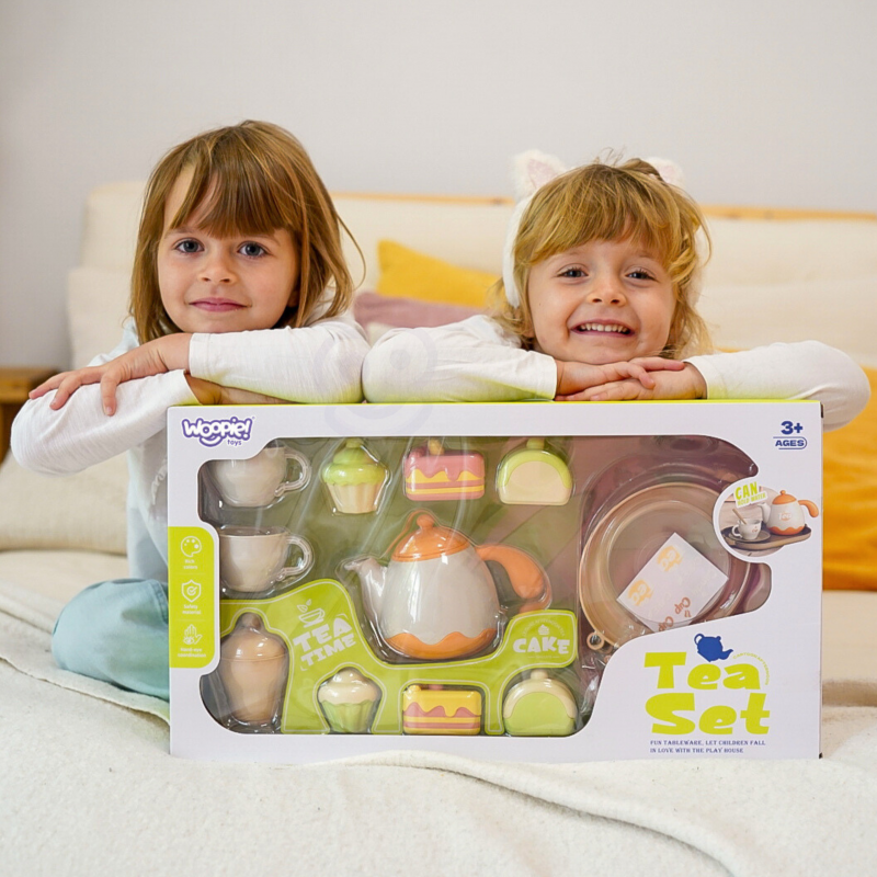 Drewniany zestaw do herbaty i deserów od marki Woopie , to świetna propozycja dla dzieci które chcą wcielać się w różne role w życiu codziennym.Urocze pastelowe kolory zachwycą Twoje dziecko a akcesoria t.j. dzbanek na herbatkę, filiżanki oraz desery pobudzą wyobraźnię i kreatywność Twojego malucha.