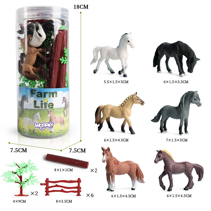 Zestaw Figurek od marki WOOPIE to idealny zestaw dla każdego fana zwierząt. W zestawie znajduje się 6 koni oraz 2 szt. drzew, 6 szt. zagrody i 2 szt. drewnianej belki. Realistycznie wyglądające figurki powiększą zbiory małego kolekcjonera, spełnią funkcję edukacyjną oraz zapewnią dobrą zabawę dzięki której maluch poszerzy zakres swojej wyobraźni i kreatywności.