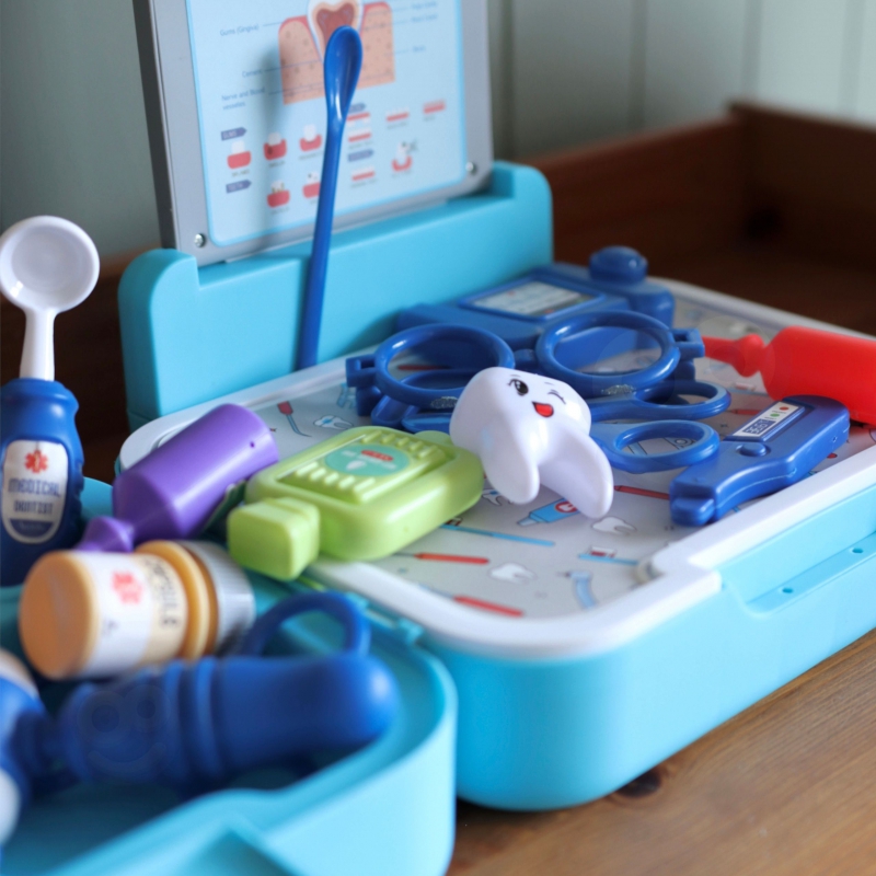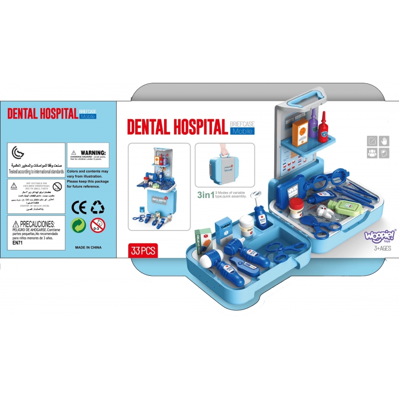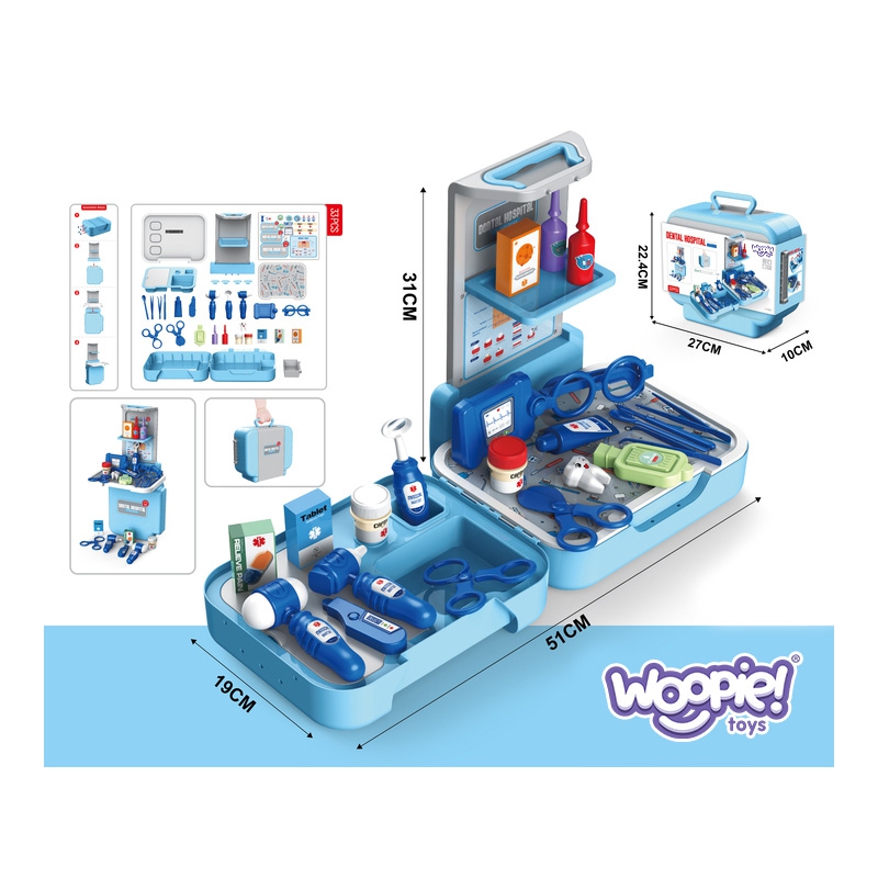 Zestaw Małego Dentysty od marki WOOPIE zawiera wszystko, czego potrzebuje Twój mały Lekarz do zabawy w dentystę. Przyszli lekarze mogą robić zastrzyki, wyrywać oraz sprawdzać stan zębów u swoich pacjentów. Zabawa w Dentystę to nie tylko jedna z zabaw na odgrywanie ról, to również nauka dbania o higienę oraz skutki jej braku. Uczy także empatii i współodczuwania, co bardzo ważne w relacjach społecznych. Wspiera rozwój wyobraźni i uczy rozwiązywania problemów.