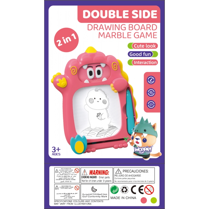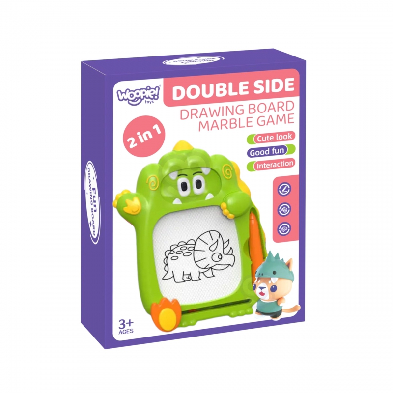 Znikopis Tablica 2w1 od marki WOOPIE to wspaniała zabawka, która może dostarczyć Twojemu dziecku wiele radości i kreatywnej zabawy na długi czas! Tablica zachęca do pisania i rysowania. Rysowanie pozwala skoncentrować, wyciszyć i uspokoić Twoje dziecko. Znikopis pozwala na tworzenie nieskończonej ilości obrazków – wystarczy przejechać specjalnym suwakiem, a rysunek zniknie i można zaczynać od nowa! Zestaw dodatkowo zawiera wygodny magiczny długopis oraz 2 stempelki, które urozmaicą dzieło. Tablica posiada wygodny uchwyt, dzięki czemu dziecko może zabrać ją wszędzie.